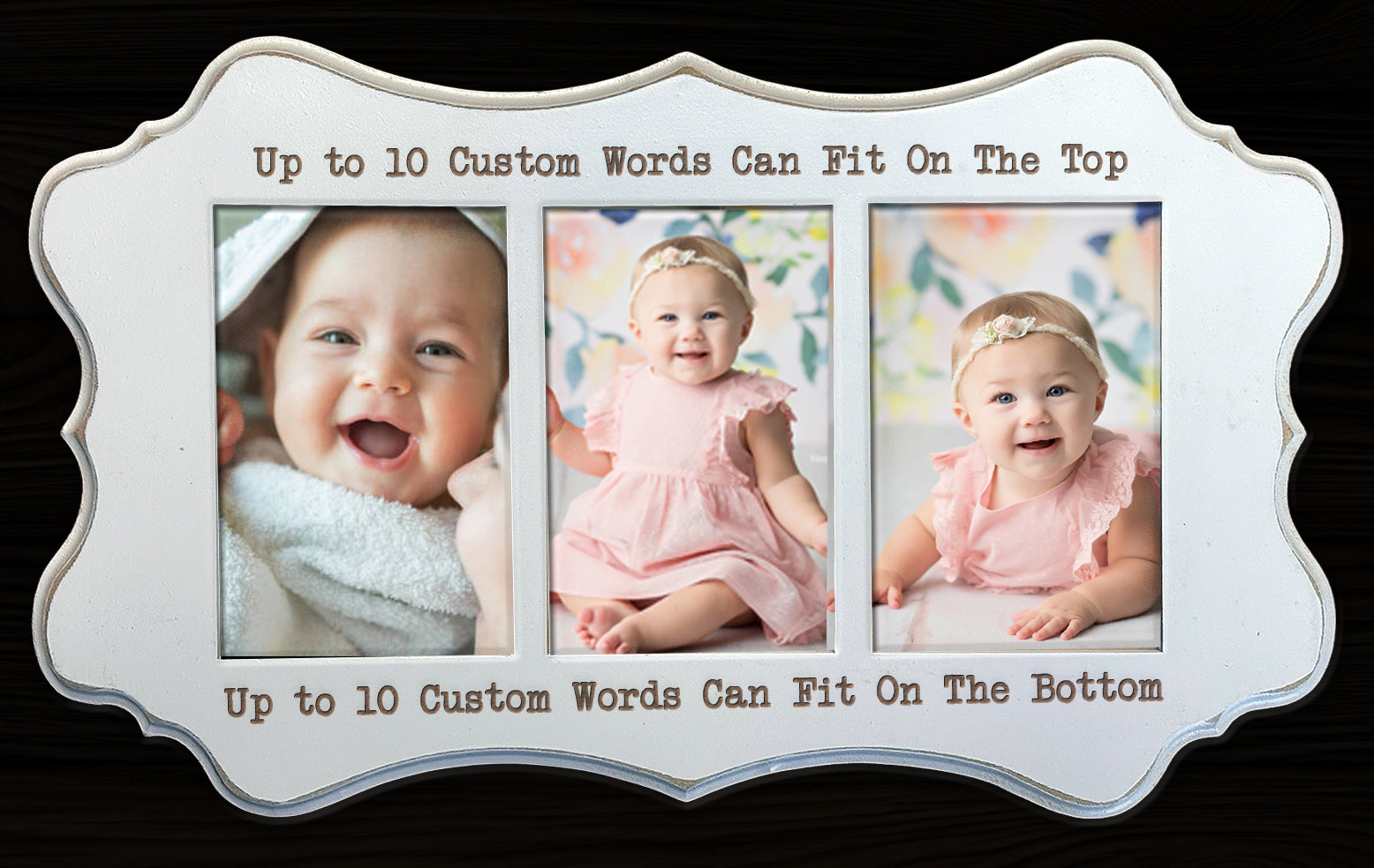 This is a distressed white wood 3 picture hold frame with 4x6 frame slots.